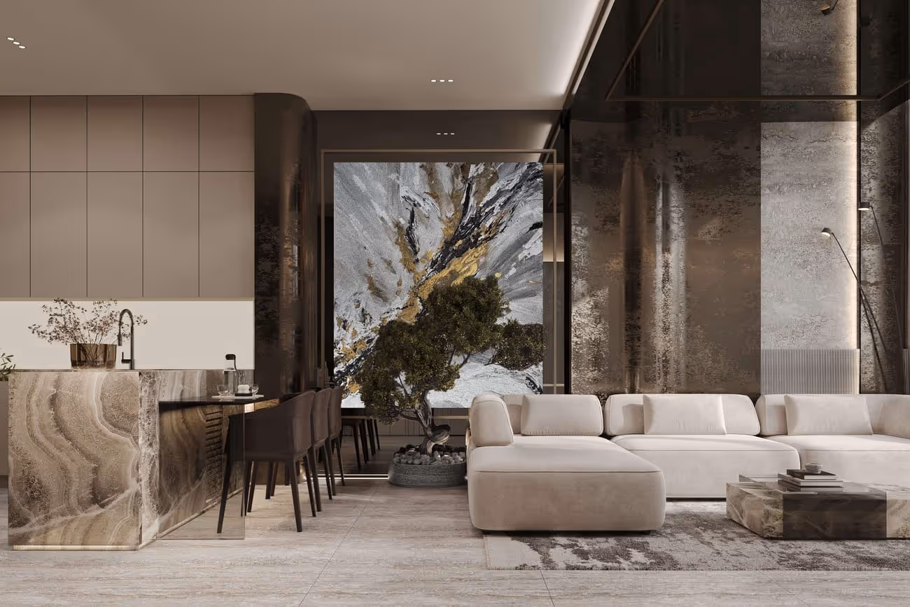 Each apartment within Arya Residences is fully furnished with bespoke designer pieces and thoughtfully curated interiors. With unit types ranging from one-bedroom apartments to five-bedroom duplex penthouses, the homes feature sky pools, personal assistant robots, and advanced smart home technology. Premium finishes reflect a commitment to both luxury and ease of living. These residences are not only elegant but truly intelligent, designed for a lifestyle of effortless comfort.
