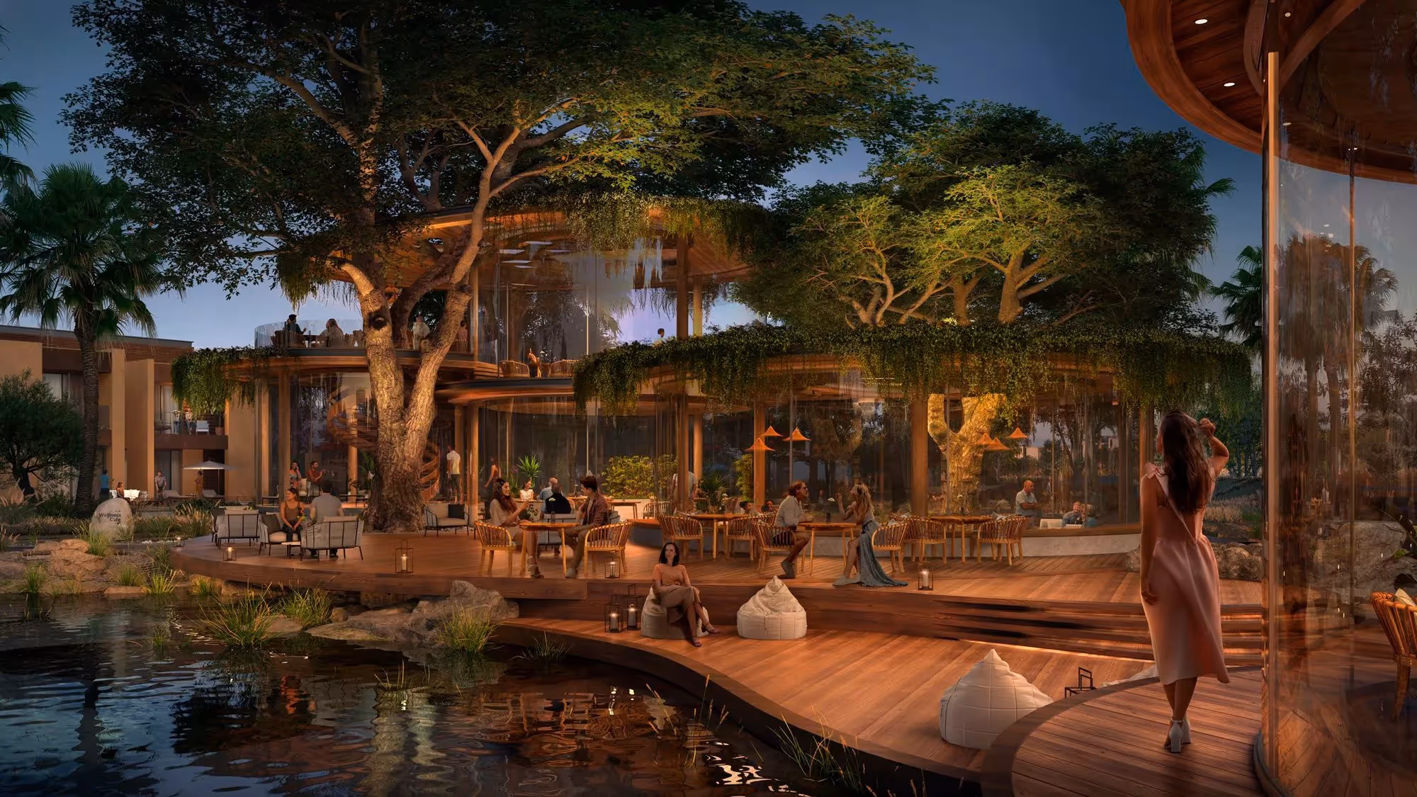 Hydroponic farm and BBQ zones